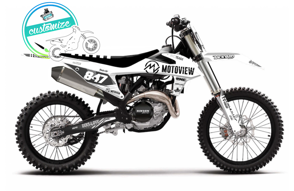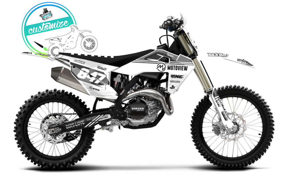 Erstelle jetzt dein eigenes Motoview Dekor. Mit dem Online Konfigurator von Backyard Design kannst du dein individuelles Motocross Dekor nach deinen Wünschen erstellen. Klick einfach auf dein BIKE und Los Geht's!